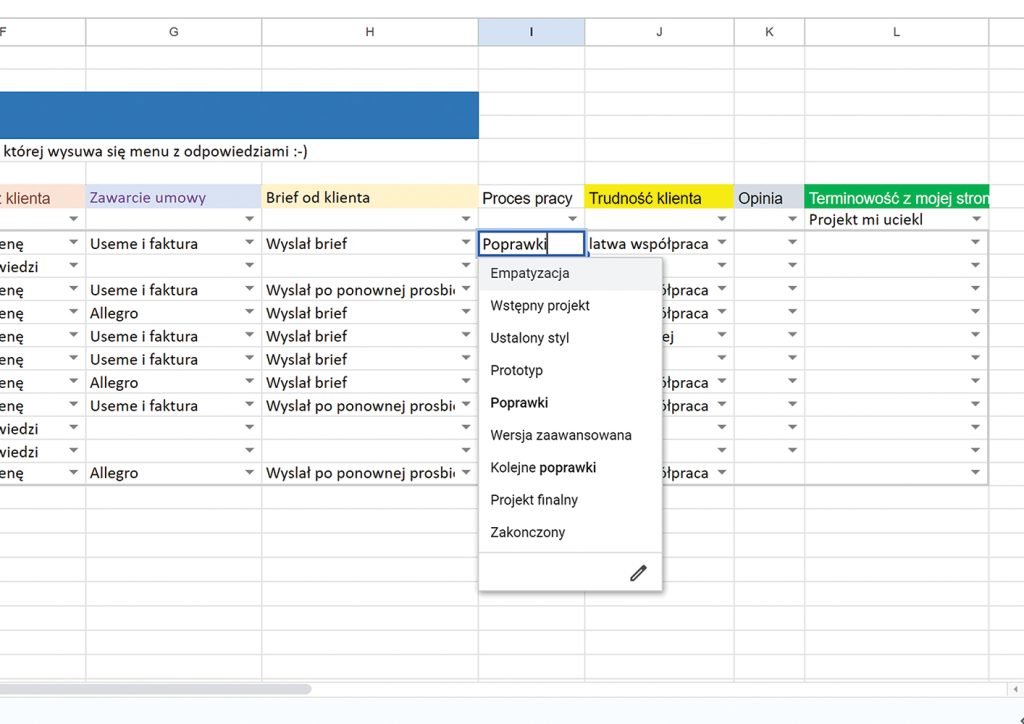 I tutaj moi drodzy, wszystko mogliście oddawać na czas, tak jak się umawialiście, przeważnie na tak, no tak średnio, ale też mogła być opcja, że projekt po prostu mi uciekał. Słuchajcie, nie ma takiej osoby, która czasem po prostu nie zawali z różnych powodów i to jest normalne. Natomiast warto to monitorować, bo jeżeli to przy jednym na 10 zlecenie się zdarzyło, że coś wam się obsunęło, no to tam okej. Natomiast jak macie na przykład 5 czy 10 zleceń i każde właściwie przeciągacie, w każdym nie jesteście terminowi, w każdym coś się obsuwa, to znaczy, że po prostu coś jest nie tak i warto nad tym popracować. A wiecie po co to wszystko? Bo jeżeli macie zlecenie raz na rok, no to tak naprawdę nie jest to istotne. Natomiast jeżeli osób, z którymi działacie jest więcej, kilka, kilkanaście, rozmawiacie, dajecie wyceny i inne rzeczy, to bez systemu monitorowania po prostu popłyniecie i nigdy to nie będzie profesjonalne, a Wy nie będziecie zarabiać tyle, ile byście chcieli.